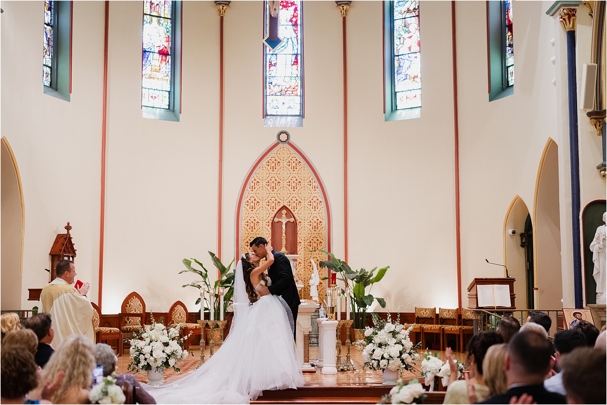 PEACH: “The peach of the wedding day for both Chris and I was by far the moment I walked down the aisle. I remember walking down the aisle and looking at Chris and felt so much love and pride for each other, the relationship we have built, and the family we are starting. It was at this moment it hit me that I was in the Wedding Dress and Chris was all dressed up in his tuxedo and we were about to get married!!! Seeing my sister to the left of me as I walked down, my mom in the first church pew – my biggest supporter, and my dad standing right by my side we both felt overjoyed with love at this very moment. We did not stop smiling the entire day and we could not have asked for it better.”