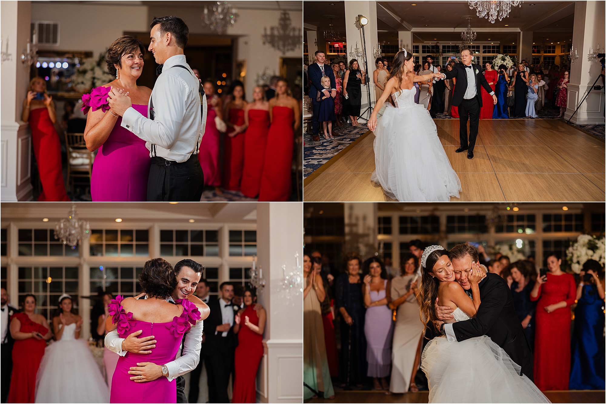 Every detail Erin and Chris chose reflected their story. Their love for Martha’s Vineyard was woven into the reception through table numbers featuring photos of their favorite island spots. Custom drink stirrers stamped with their new last name and cocktail napkins featuring their puppy, Saylor, added playful, personal touches that guests loved.