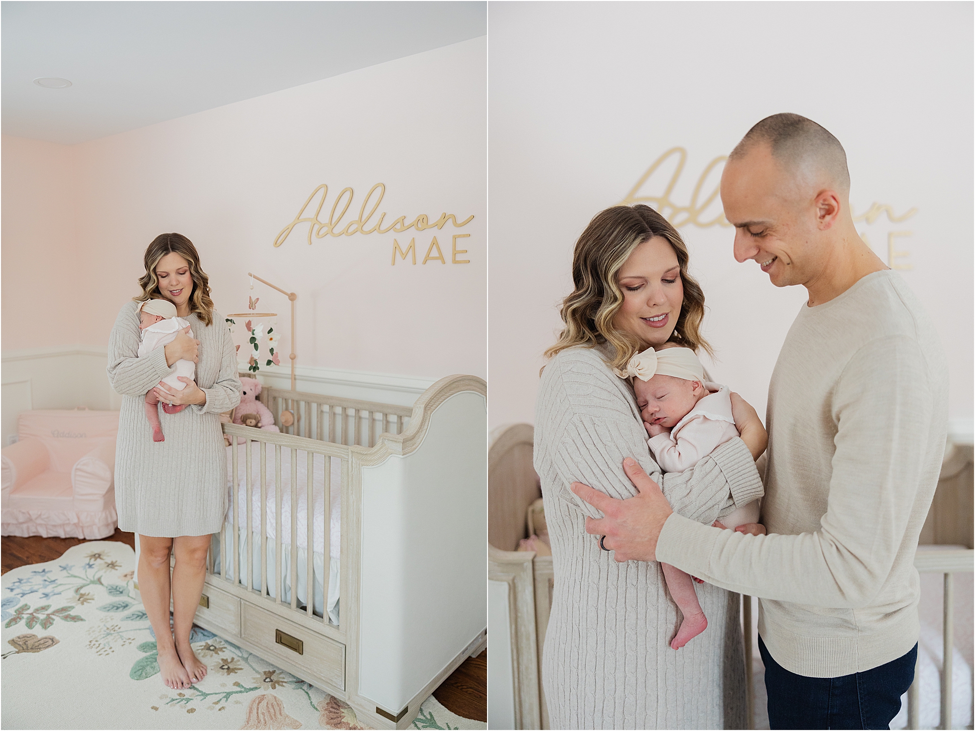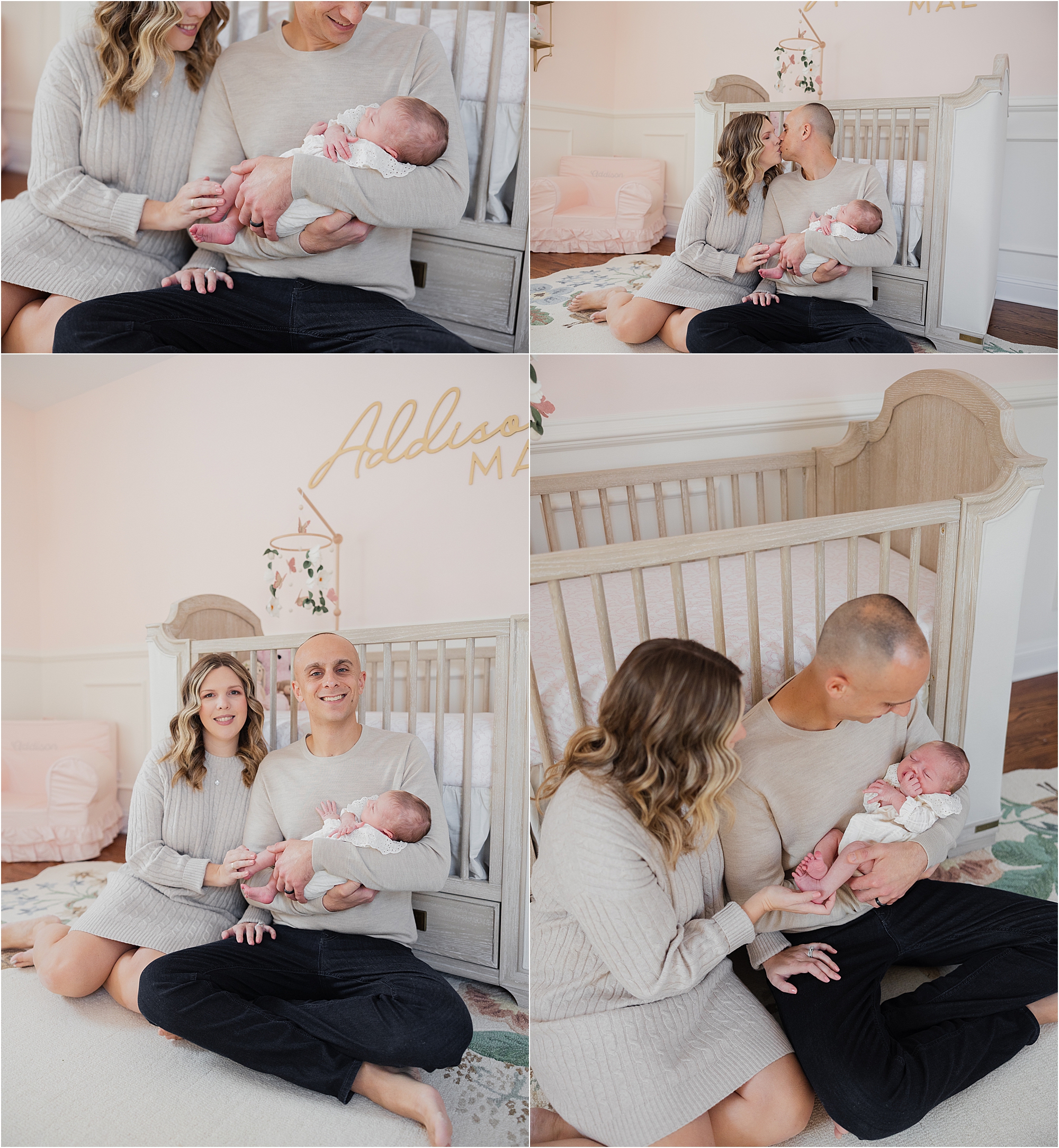 During the Belli family’s session, beautiful natural light filled their home, creating the soft, airy look that I love in newborn photography. We photographed in the nursery they carefully prepared for their daughter as well as in the living spaces where they’re now spending so many of their first days together as a family of three.