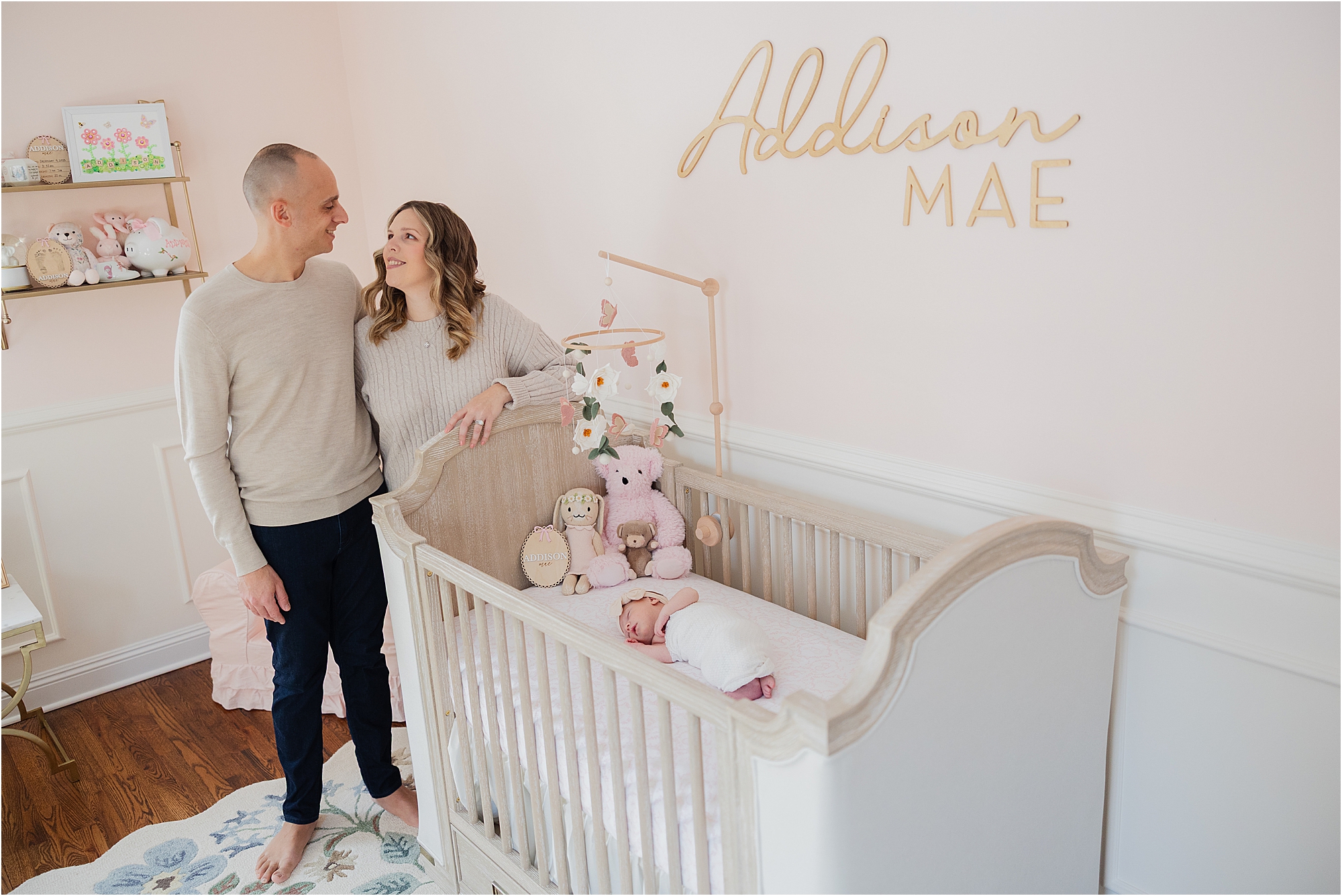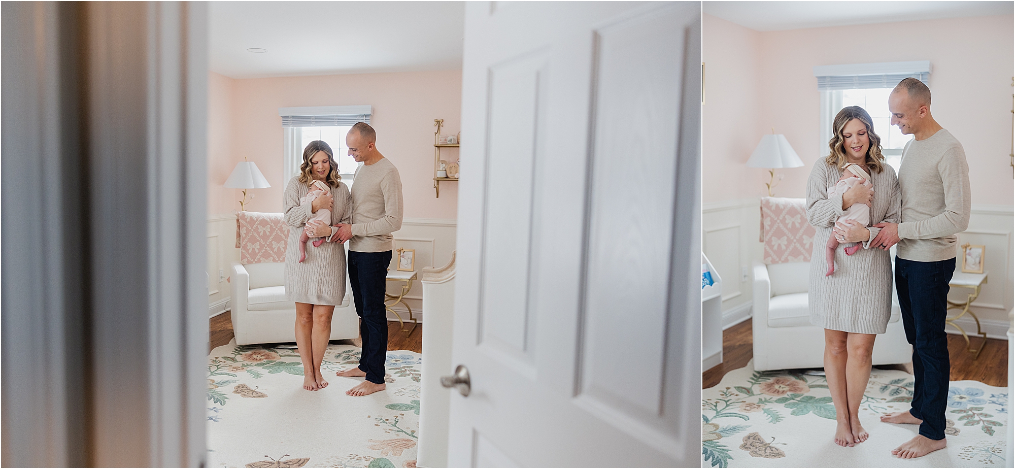 Welcoming a new baby into the world is one of life’s most meaningful milestones, and documenting those first weeks at home is always incredibly special. This recent in-home newborn session in New Jersey with the Belli family was particularly meaningful to photograph because this wasn’t our first time working together. Over the years, I’ve had the honor of documenting their engagement, wedding day, and now the arrival of their baby girl through Peach Photography.
